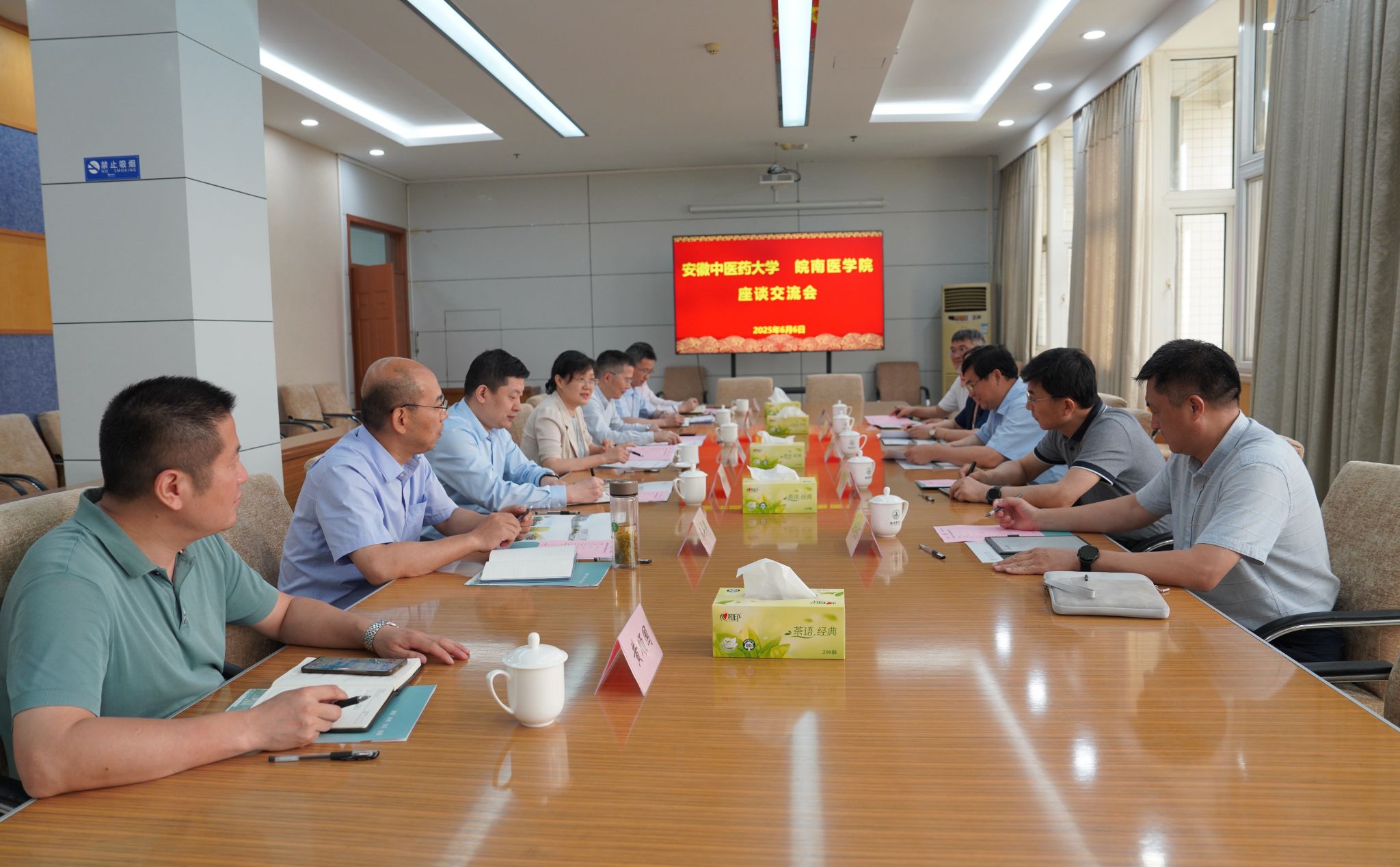 6月6日下午,安徽中医药大学党委书记谢瑞瑾一行来校调研交流,学校党委书记夏劲松,党委副书记、院长姚应水,党委常委、副院长韩永升出席活动。
